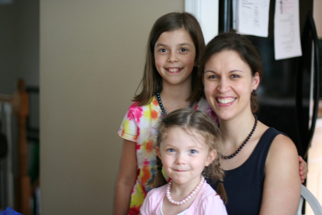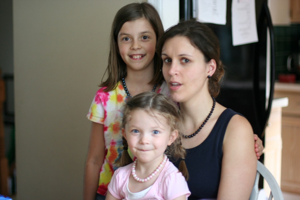 We tried to have Joshua take a picture of us in our pearls (though of course Zoe’s pink and white ones aren’t real. 😉 ).