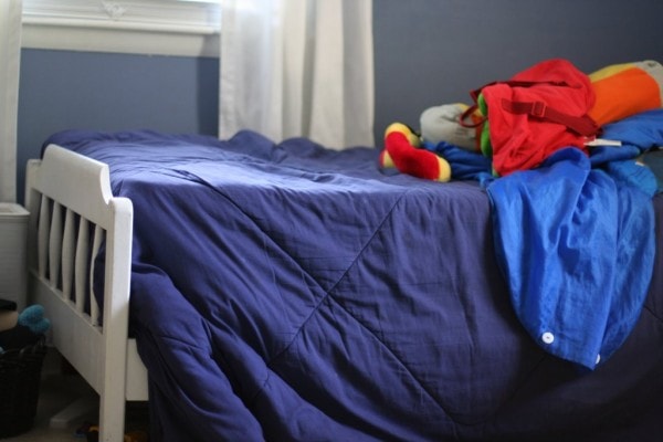 Unfortunately, the bed is in a dark corner of his room, and it’s kind of a cloudy morning here, so I had trouble taking pictures. None of these really blow my hair back, but I’m too impatient to wait to share about his bed, so here you go!