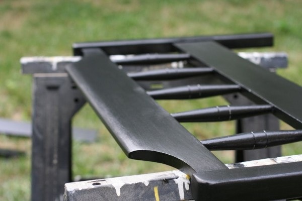 Once it was all sanded down, I used the painting method described in my How to Paint Wooden Furniture post to paint the bed black.