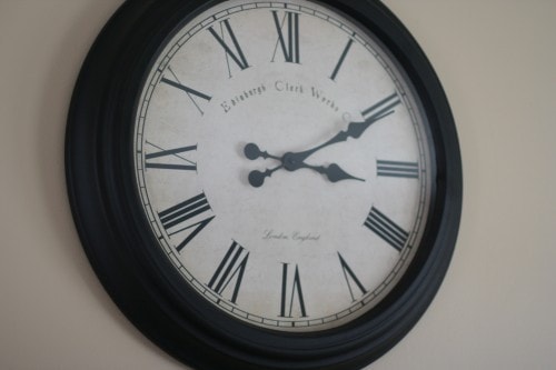 My husband and I bought this clock last month(you may have noticed it in the furniture pictures). I’ve been really wanting one to go over my piano for a while, and we found one on a good sale. When we got to checkout, though, I noticed that the inside of the frame was a little bent. It wasn’t terribly noticeable, and it was the only one they had, so I asked if they would mark it down, and sure enough, they took 15% off! Yay!