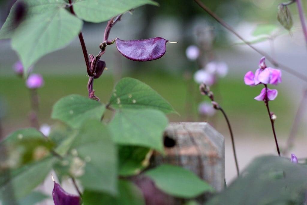 My brother started growing them years ago when he was the landscaper at church. They now cascade over a long fence there and produce hundreds of bean pods every year, each filled with little purple seeds.
