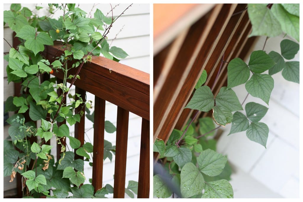 I love that they’re visible from both sides, and because they hang down, they’re even visible from under the deck. These deck plants are just about to bloom, but even without the blooms, I think the green vines are beautiful to look at.