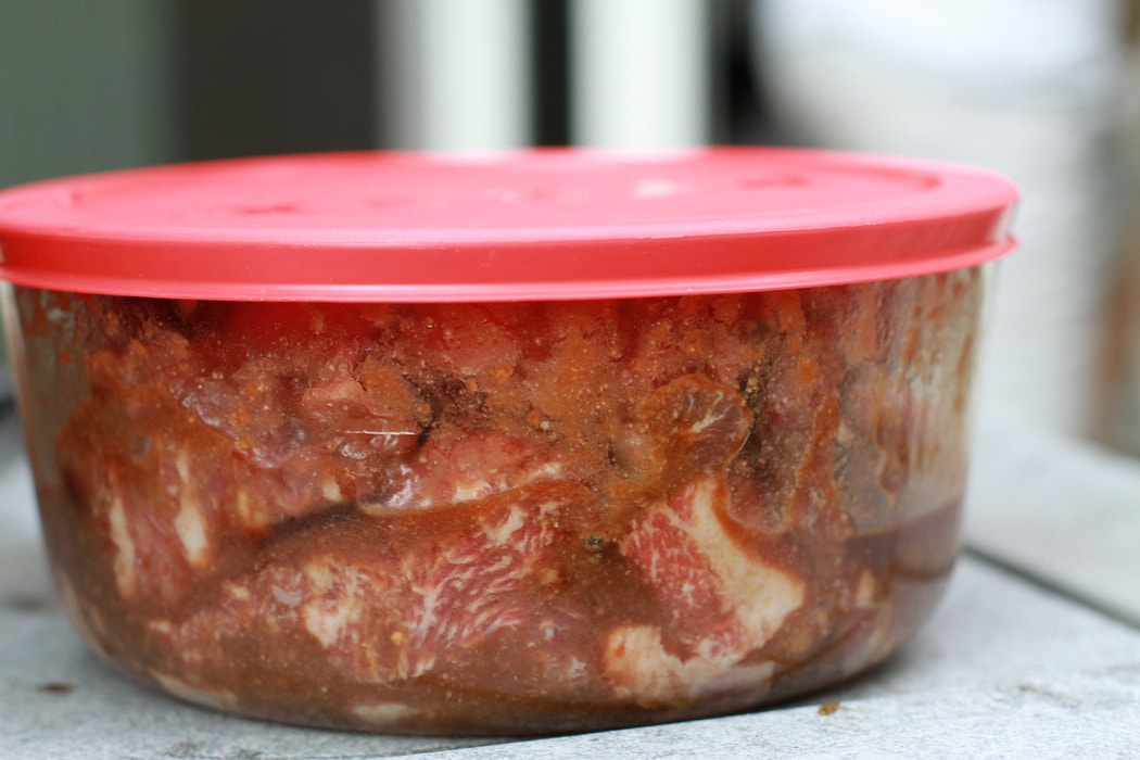 Pour a third of the marinade into a pan or bowl, add the meat, and top with the rest of the marinade. Refrigerate for at least 4 hours.