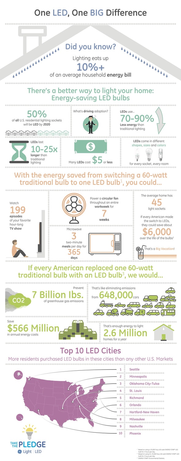 GE sent me an infographic with some pretty sweet stats about the benefits of LEDs.