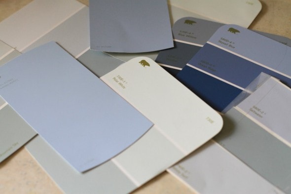 Lisey knew she wanted a shade of blue on the walls, so we picked up some samples and sorted through them.
