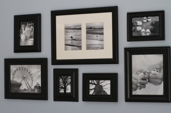 black and white photo wall