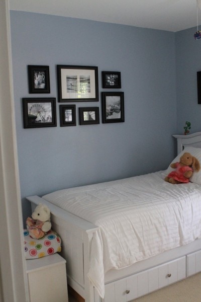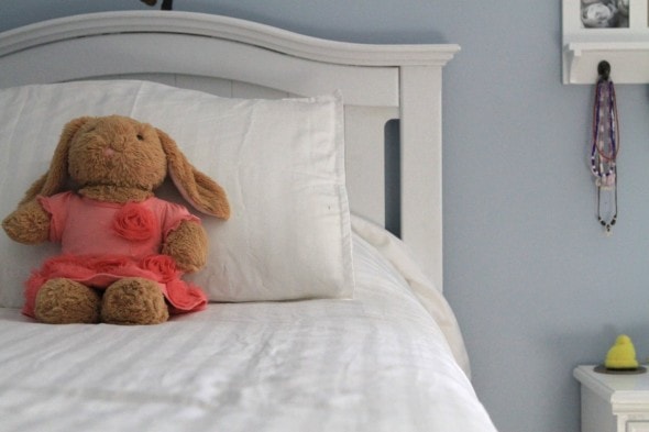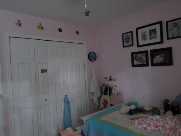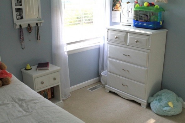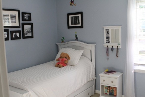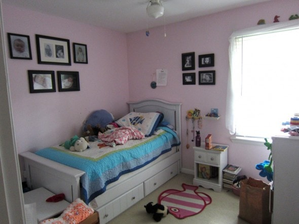(Zoe had that bedroom for a long time because until last year, it housed a crib-turned-toddler-bed that no one but her could fit into! When we bought the twin-sized white bed and painted it (before and after photos of that project right here), we told her she could stay in that room for a year to enjoy the new bed, and then we’d move her in with Sonia so that Lisey could have her own space.)
