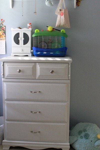 All of the furniture in here is from freecycle or Craig’s List, and I’ve painted it all myself.