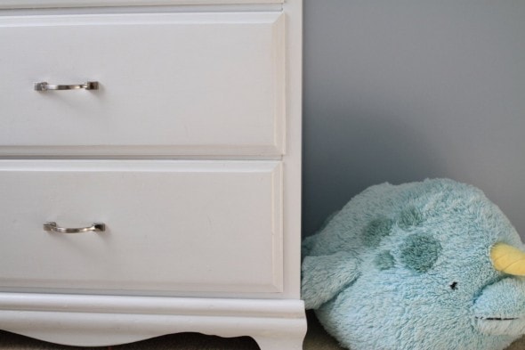 This room is only missing one thing…a clock. We have a super cute two-bell alarm clock on order, and it’ll go on the nightstand.
