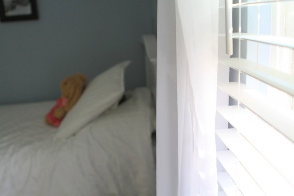 To “make” them, I just bought sheer, drapey fabric from Jo-Anne’s and draped them over a curtain rod. Super easy and super cheap.