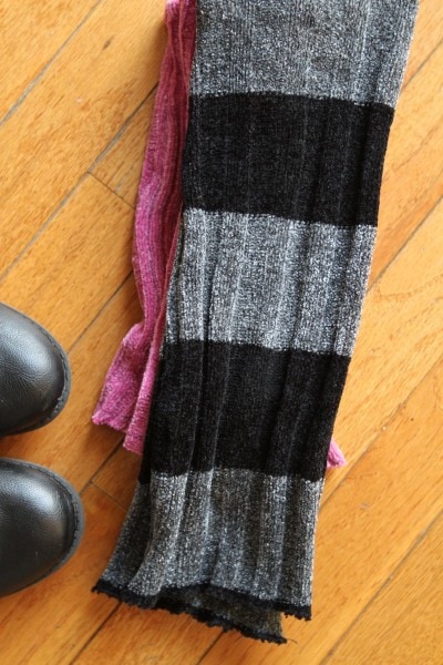 I’d been wanting to give boot socks a try for a while now, and since my girls have a lot of hoodies and sweatshirts already, we decided to put these in the refashioning pile.