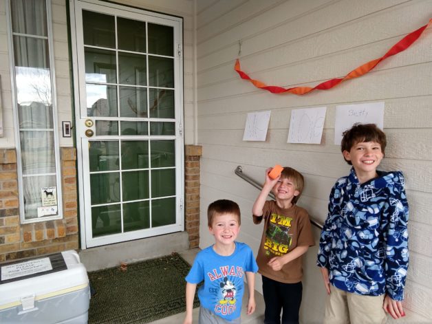 the boys at a friend’s house as we dropped off food and decorated her porch