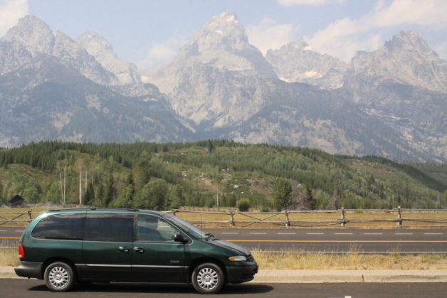 Our first Plymouth Grand Voyager van (which he had before we got married) carried us on road trips until it hit 360,000 miles and we decided to retire it. That van was also our only vehicle for the first eight years of marriage, so the bikes and jogging stroller were kept busy with grocery runs and errands.