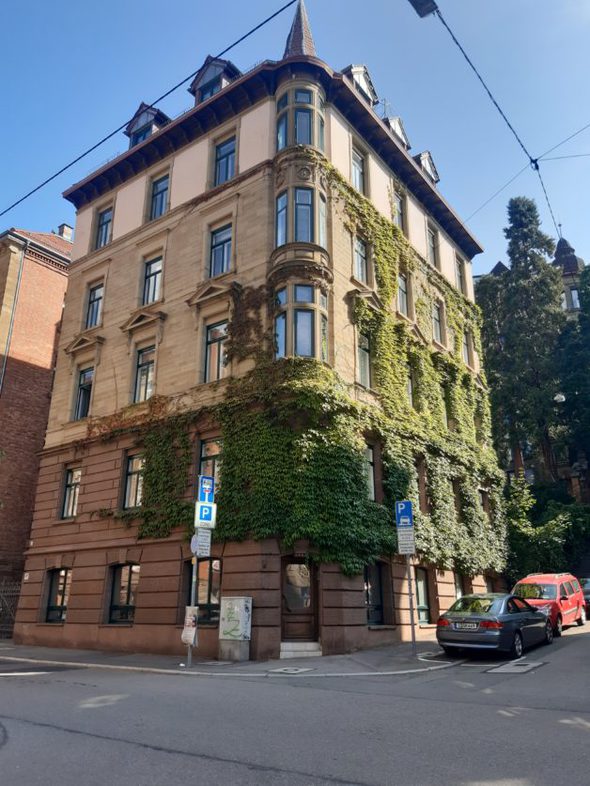 The building I live in was built in 1883 and still has many original features…door handles, window handles, even some of the glass, hardwood oak flooring, etc. Quite typical in Germany. It is a shared property. Mine is on the third floor.