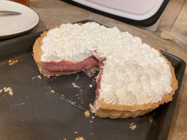A strawberry-guava tart, made with the strawberry guavas from the invasive bushes on the trail behind our house. I love baking and invented this recipe based on the cranberry tart recipe on America’s Test Kitchen, which I have also made a couple of times.