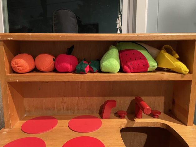 Felt fruit I made for my daughter; the play kitchen is from Facebook Marketplace!