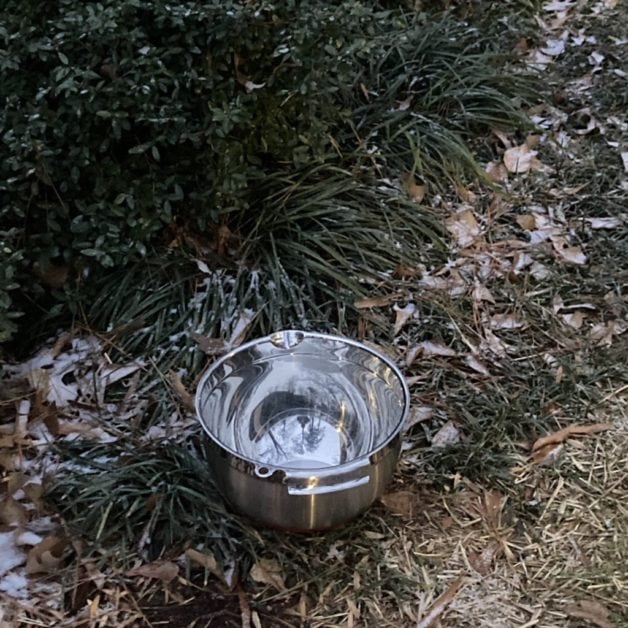 Setting out the mixing bowl when there’s snow in the forecast is a fun and relatively frugal way to anticipate snow, and it helps us enjoy the cold weather even when we’re finished playing outside.