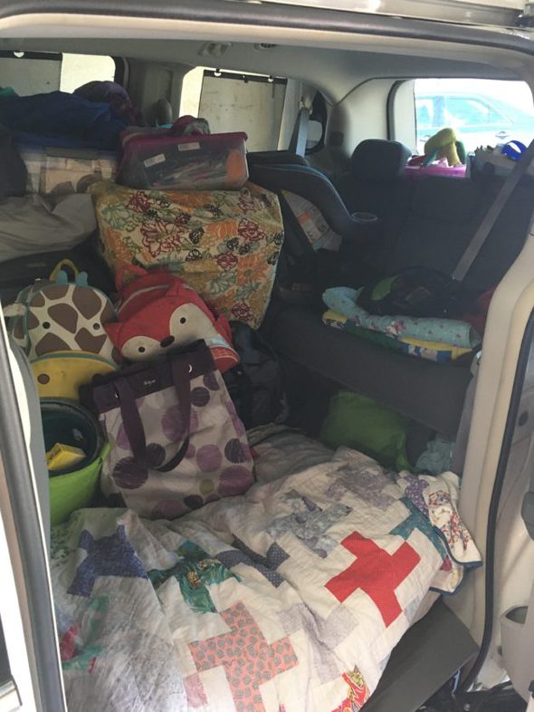 We left California in May of 2021 and spent 2 weeks getting back to Iowa. Every time we stopped, it felt like a giant game of Tetris to get our possessions and children in the van while still being able to see out the back.