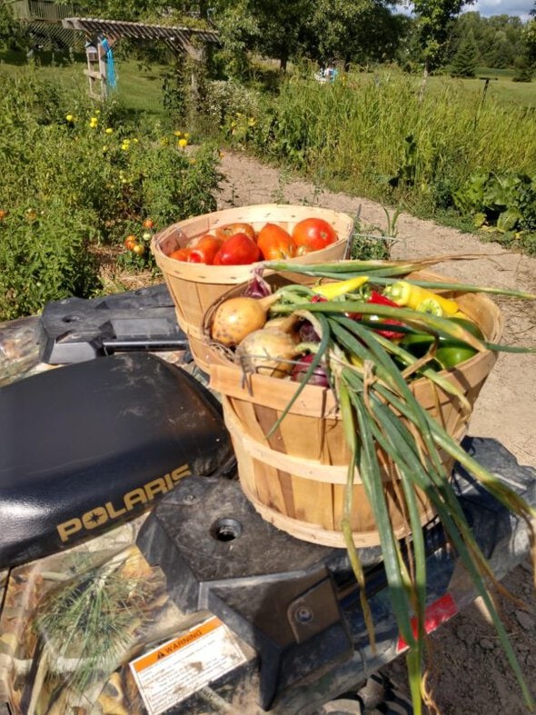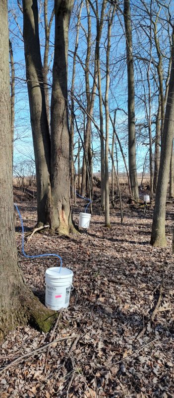 We deer hunt in the woods, tap trees for maple syrup, grow a big (about 1/4 acre) garden that provides a lot of our veggies for the year, and have a small orchard (about 10 trees–peach, apple, pear, tart cherry).