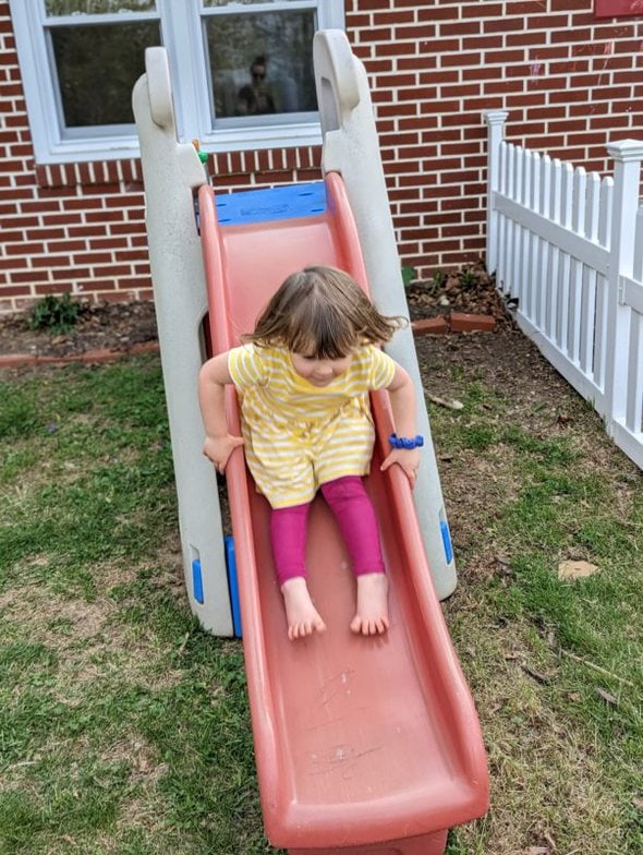 our outdoor play area, which we use a ton and most of which was furnished by Facebook marketplace.
