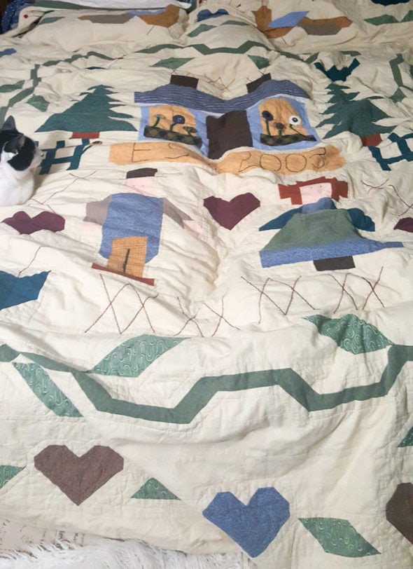 Another frugal win is this handmade king-size quilt, with my wedding year found for only 10$ (half-off day).