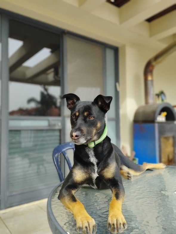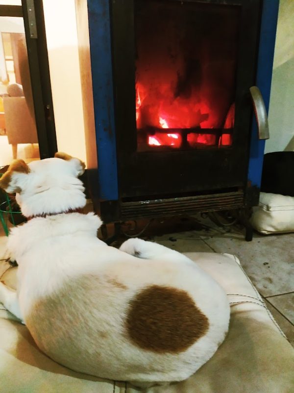 Our daughter and one of our dogs in the fields around our home