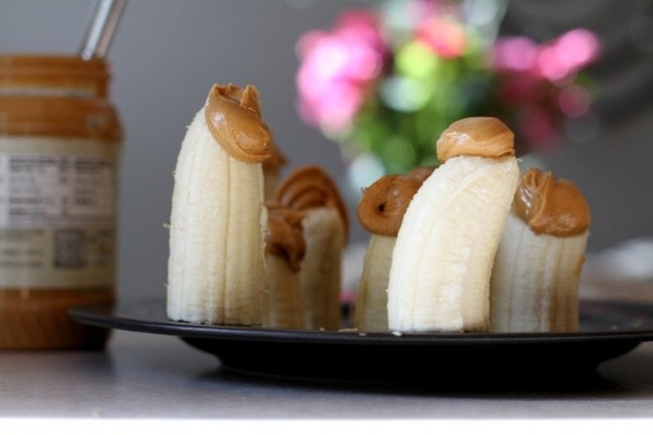 And when we had many bananas ripen all at once, I did a little preemptive food waste fighting by cutting them into chunks and topping them with peanut butter. My kids love this and they can down a lot of bananas this way.