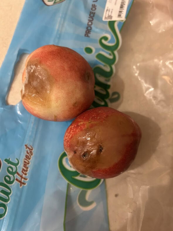 But occasionally, something arrives that is not in good shape. Such was the case with some nectarines in my last box, so I took a photo and emailed it to them.