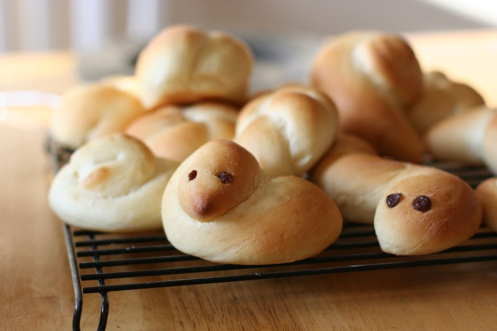 I usually make uncoiled snakes (like the one on the right), but this time I made a few in a coiled shape, and it worked out pretty well (I used my basic roll recipe to make these)