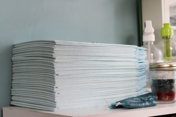 They bought a large box of puppy pads on Amazon for $16.99, and they still have a bunch left even after three months of using them. So, this is definitely cheaper than using bedding.