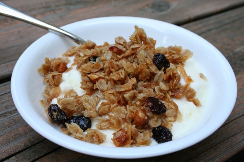 And here’s how I make granola (no stirring required while baking!)