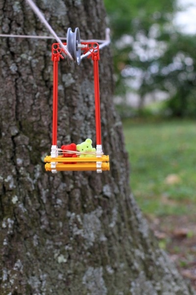 Well, the cars are Knex..the zip lines are yarn.