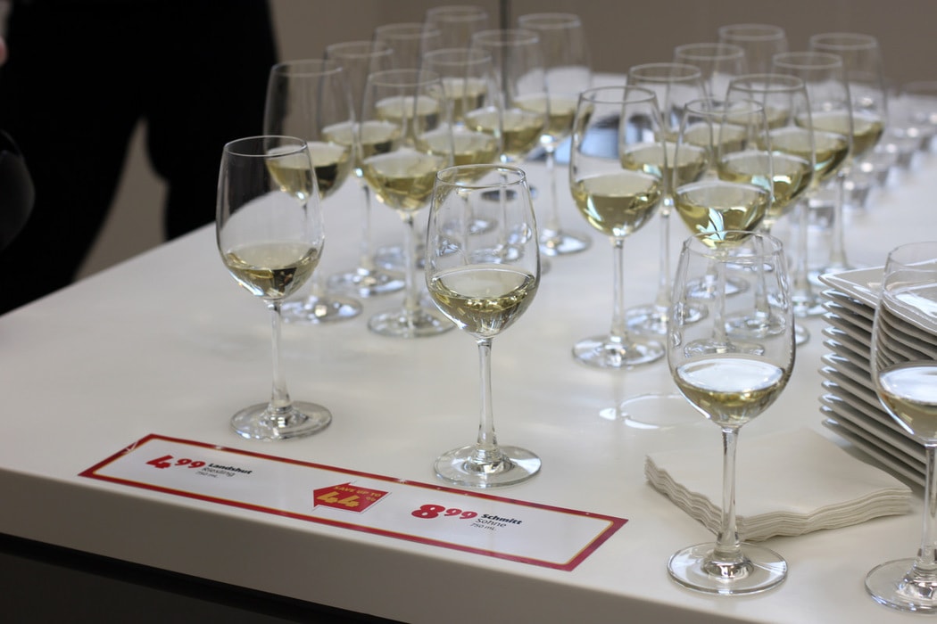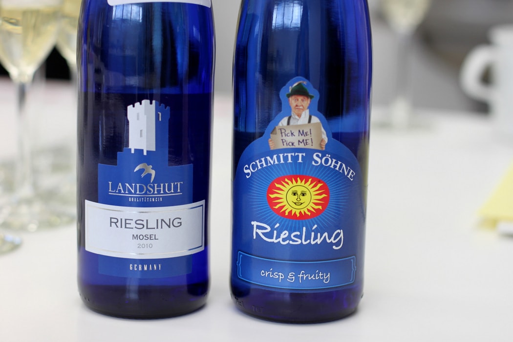 We didn’t get to see this until after we tasted, of course, but check out Aldi’s Riesling labeling as compared to the major brand. Isn’t Aldi’s (the one on the left) much sleeker-looking?