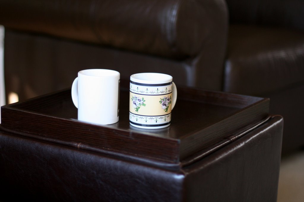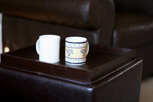 But the really delightful thing is that the top flips over, and the underside is a tray-like surface, which is perfect for our coffee-table-less living room.