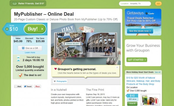 If you haven’t got a Groupon account, click here to sign up (it’s free and I think Groupon often has great deals). Once you’ve signed up, you can log in and use the search bar to search for My Publisher.