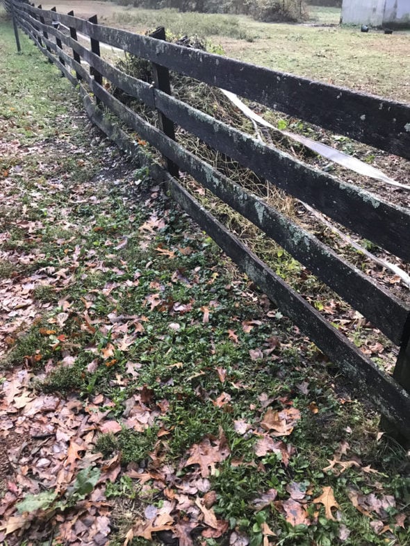 A tree fell onto their fence, so they just tied the fence up to the stump of a tree to hold the fence up. I imagine it will be that way for 15 years or so. 😉