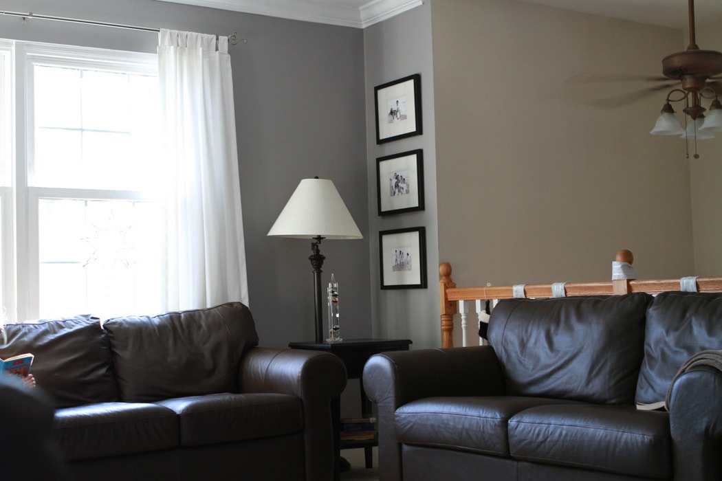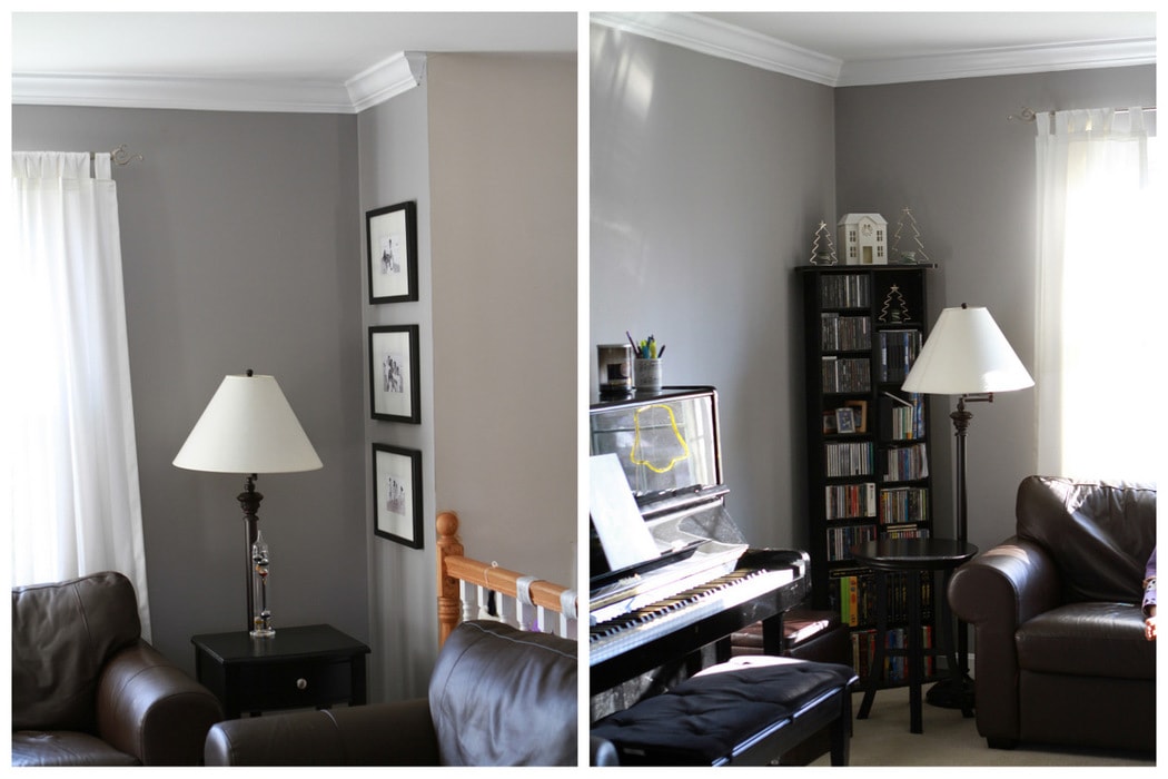 Your furniture and decor look great with the grey, and it really does make your crown molding pop! And it is so neutral, you could always add some pillows, wall decorations, candles, etc., to add some different pops of color, if you wanted to change it up a bit!