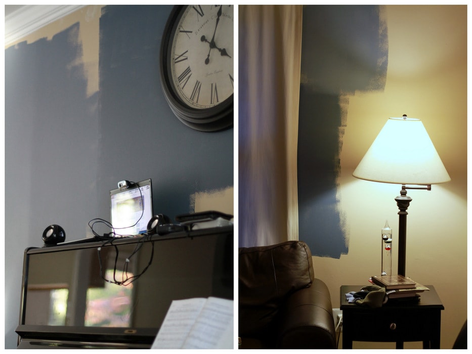 If you missed the story on that, we got crown moulding, painted it, and got paint on the walls, so we needed to repaint. I decided I wanted a change of pace, so I was looking for a silvery blue. But it turns out a blue light enough for my north-facing room is, uh, baby blue.