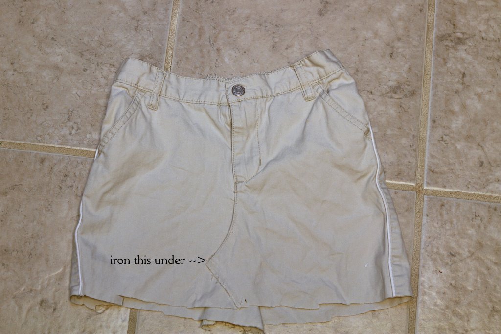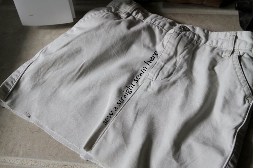 Here’s how I cut the legs of the original ruffled skirt.