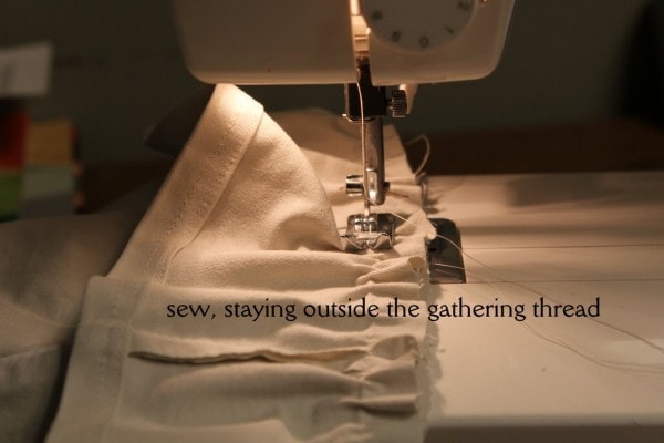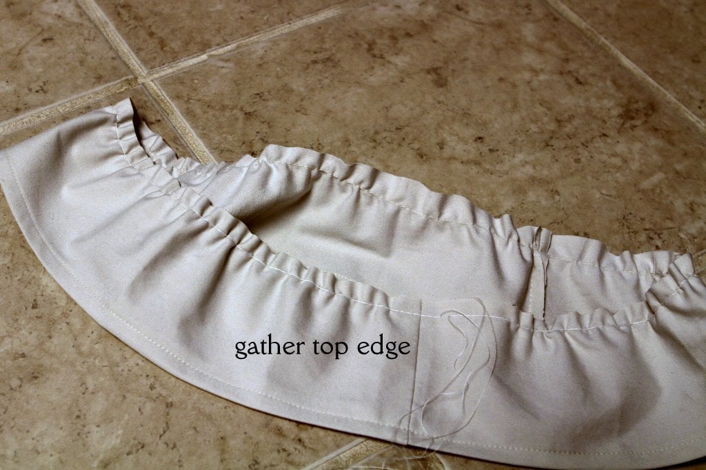 Sew the gathered ruffle onto the skirt, making sure to stay just to the left of the gathering threads.