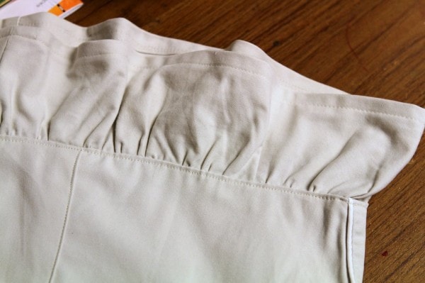 To secure the ruffle and make the skirt look a little more finished, topstitch around the unruffled portion of the skirt, staying close to the edge.