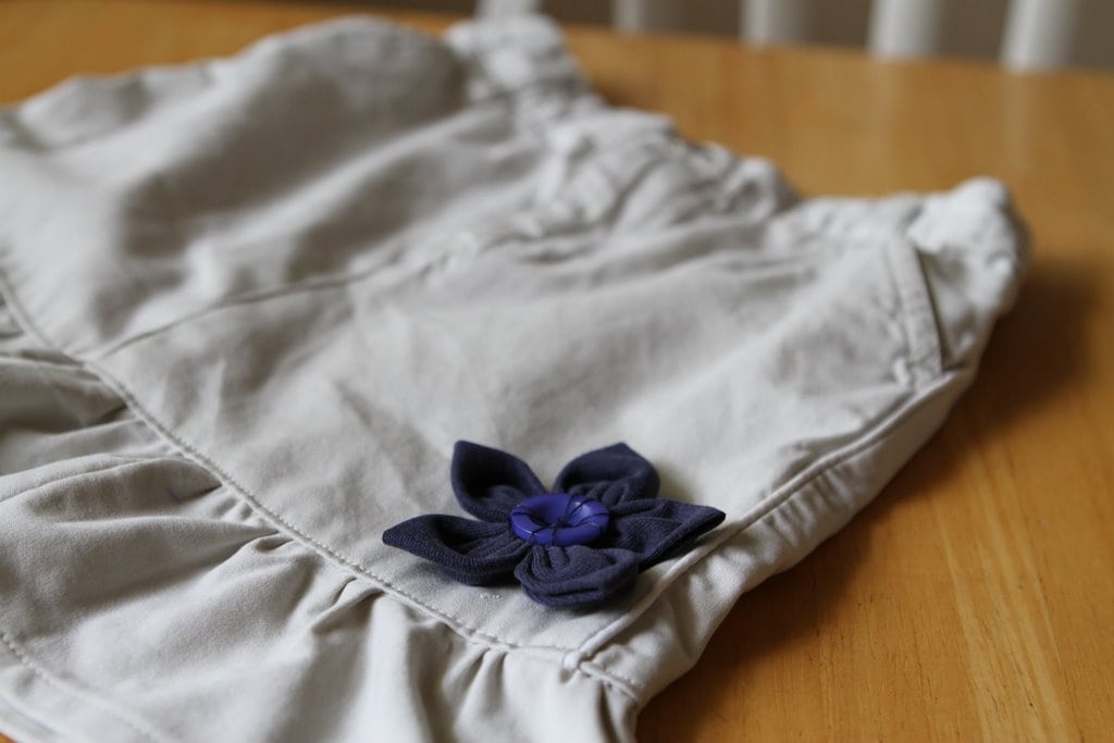 And that’s it! The skirt is done. To dress Lisey’s up a little, I made a flower using a tutorial I found thanks to Google.