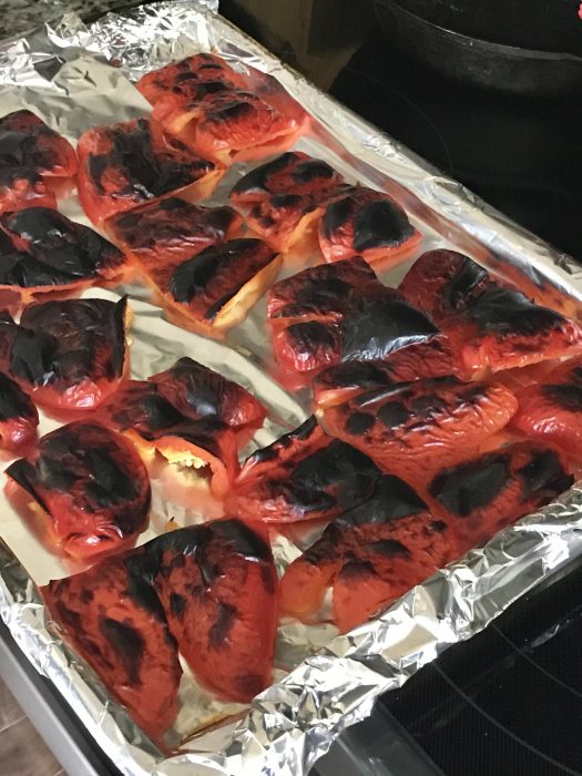 You can buy roasted red peppers in a glass jar at the grocery store. But they are so easy to make, I pretty much never buy them.