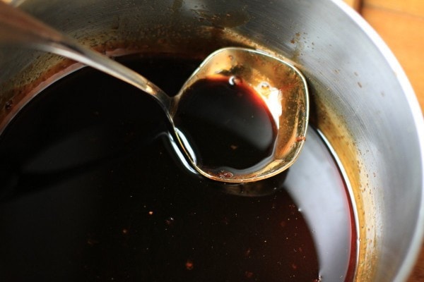 Stir the cornstarch mixture into the soy sauce mixture, and bring it to a boil over medium heat, stirring every now and then. Simmer over medium low heat until sauce thickens slightly (4 minutes or so.) Set aside.