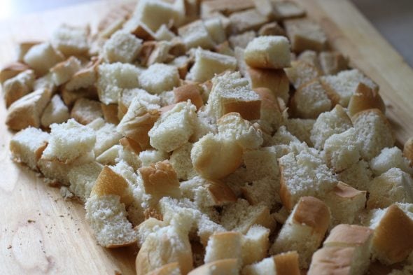 I bought some hot dog buns that ended up being pretty dry. So I cubed and froze them, and I think I’ll use ’em to make a batch of dressing to go with the chicken I’m roasting tonight.