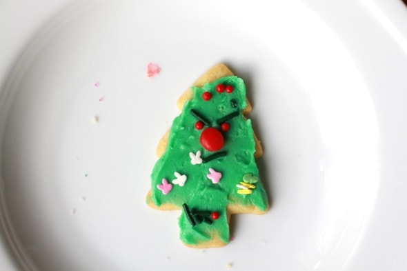 Our cookies are often messily decorated or completely covered in red hots, but our goal in making these is not so much beautiful cookies but rather having fun together.