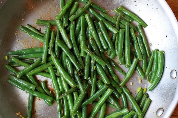 Serve right away because green beans tend to lose their heat pretty promptly, and I think these are much better when they’re piping hot.