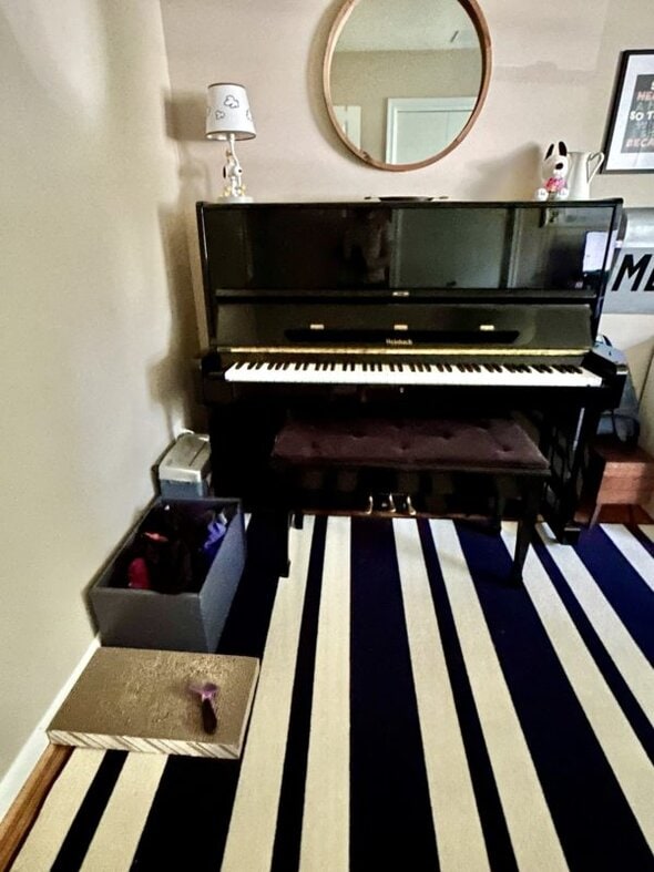 My shredder is from eBay, and my mirror over my piano is from Facebook Marketplace.