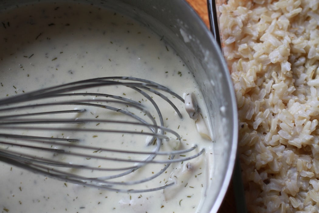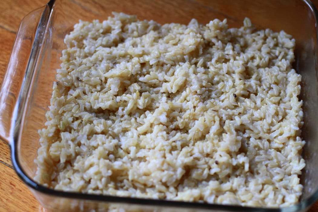 You can use white or brown rice, but I usually use brown. Because when I’m making a recipe that calls for cream and a stick of butter, health is clearly my top priority.