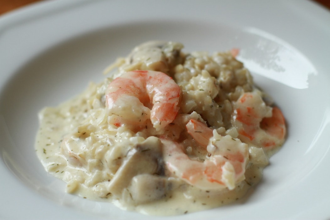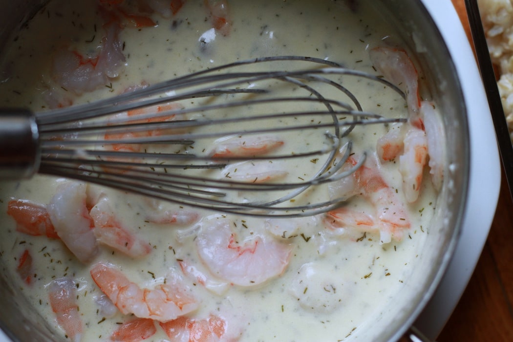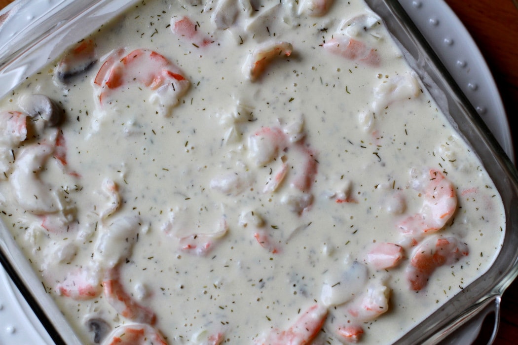 Basically, though, it’s a rice casserole with a delicious shrimp and mushroom cream sauce.